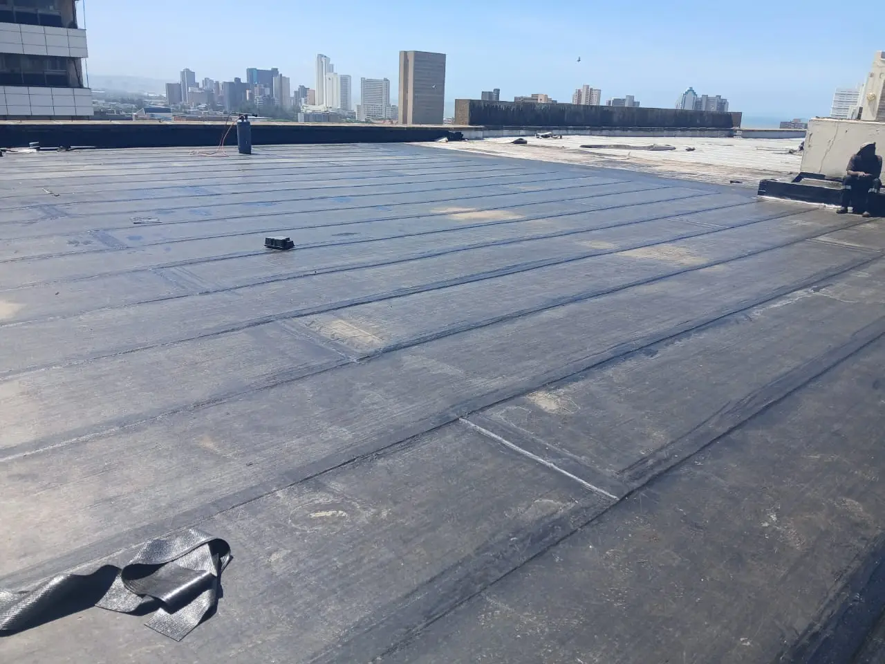 Torch-on waterproofing on industrial rooftop in Durban